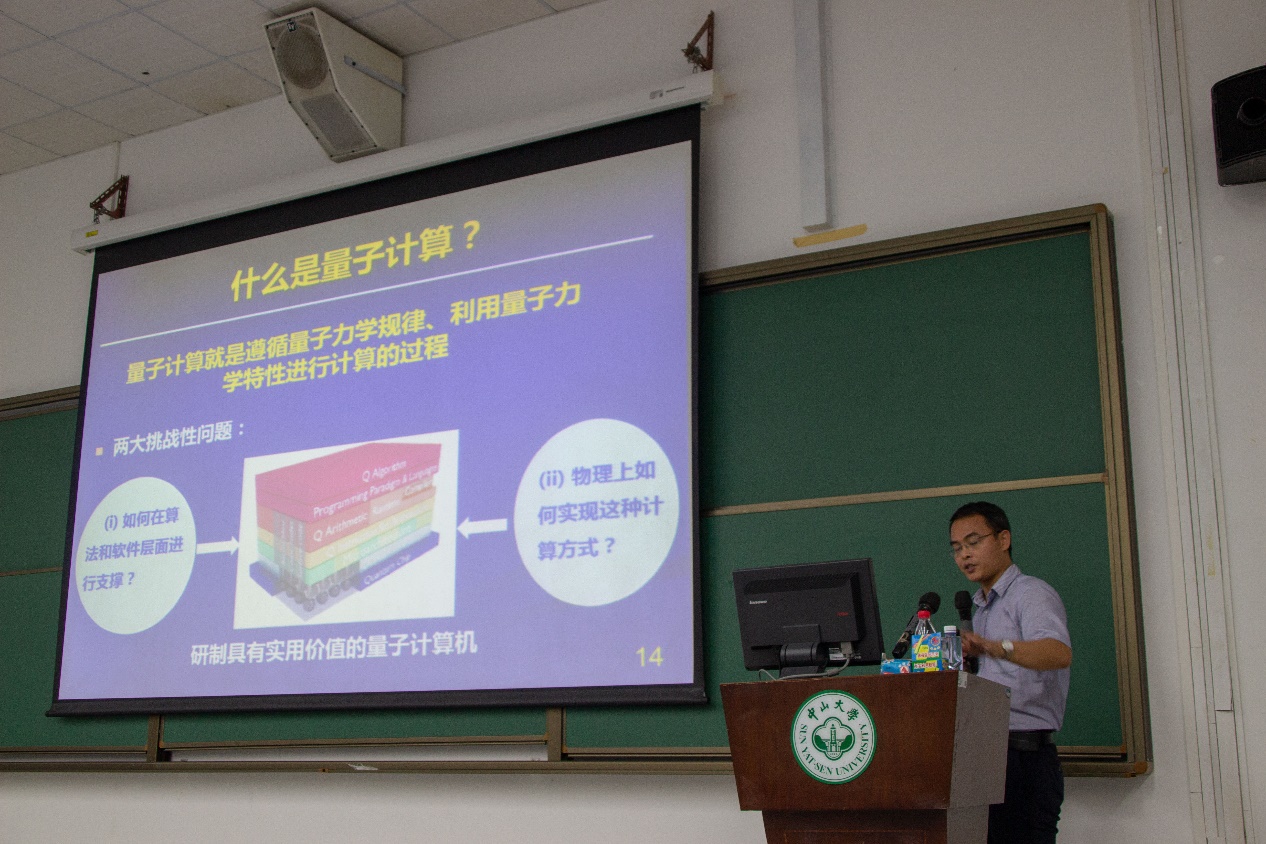 紧接着,站在社会发展和国家战略的高度,李教授还讲述了研究量子计算的动机,摩尔定律的极限,量子计算思想的萌芽等。讲座中,李绿周教授特别指出:“满足人民对美好生活的向往”正是在中国梦背景下量子领域研究人员的追求。